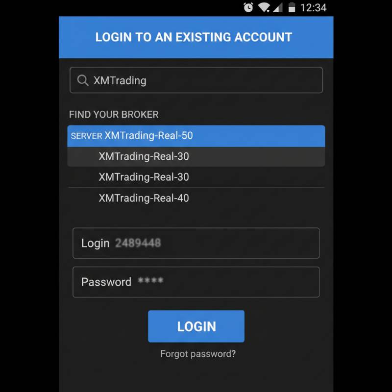 - サーバーの検索(スマホ版のみ): 検索窓に「XMTrading」と入力し、表示される候補から選択します。